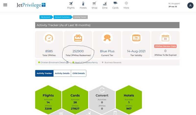 मैंने लाखों JP माइल्स (करीब 2,52,900) का उपयोग कर कई बार मुफ्त के हवाई टिकट और 5 स्टार होटल बुक किये |